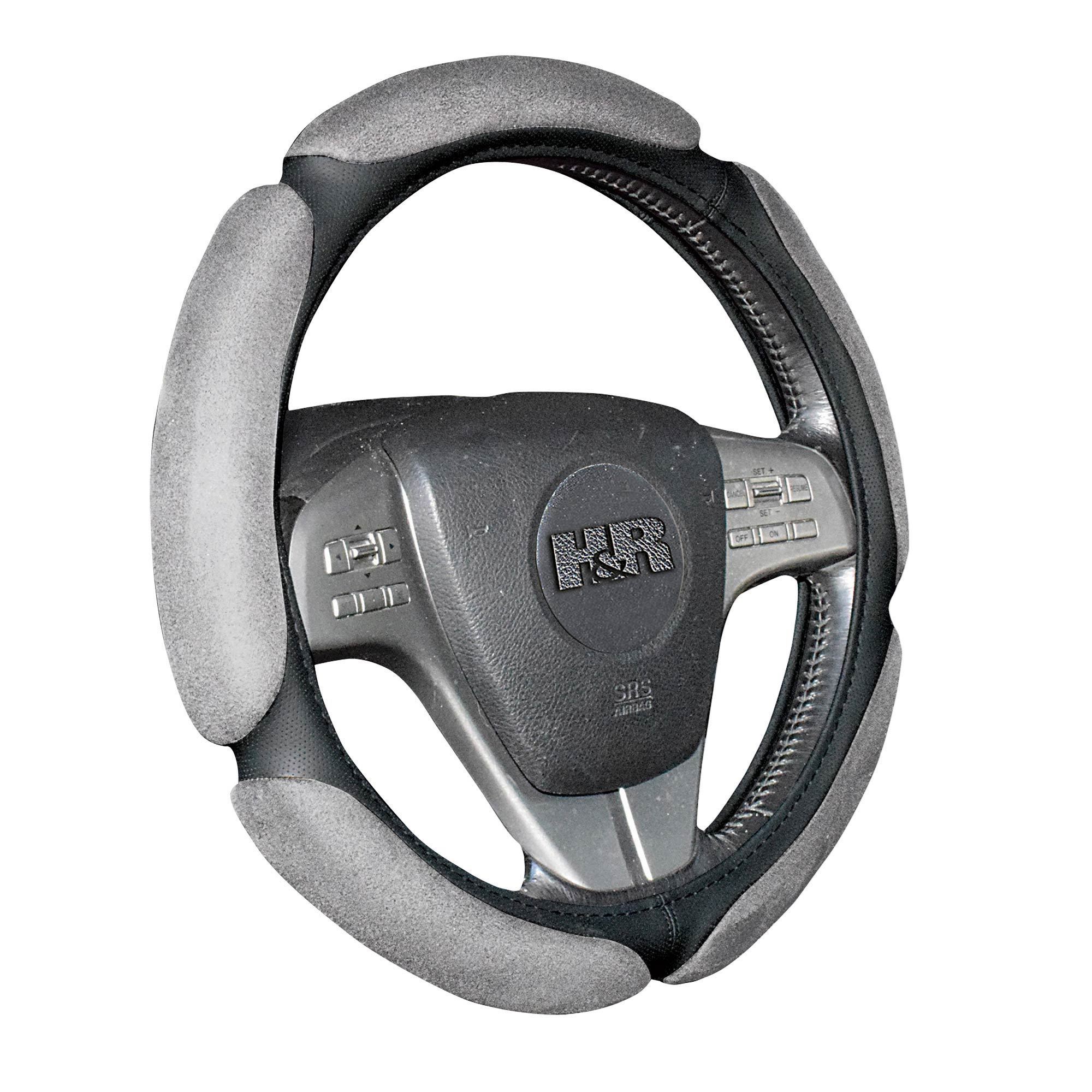כיסוי הגה איכותי העשוי בד סופט ו-PVC, בצבע אפור, בעל עמידות גבוהה.